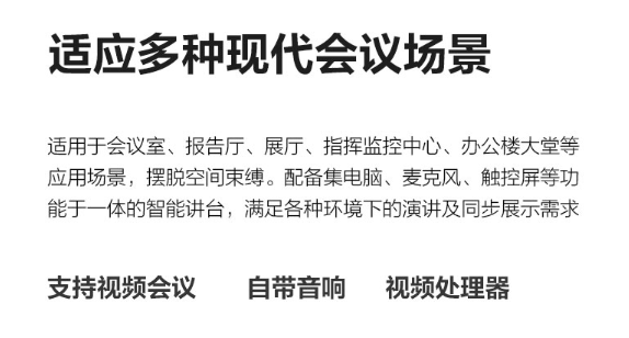 适用于会议室、报告厅、展厅、智慧监控中心、办公楼大堂等应用场景